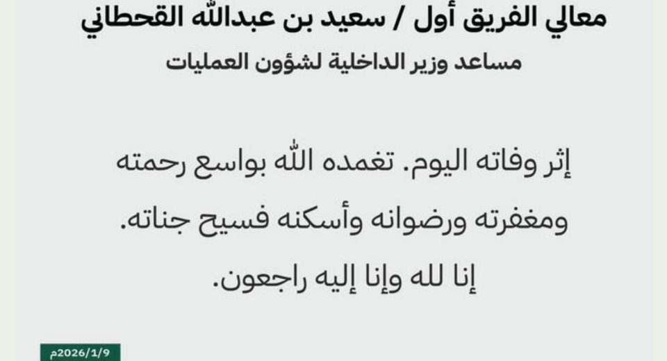 സൗദി ആഭ്യന്തര സഹമന്ത്രി അന്തരിച്ചു