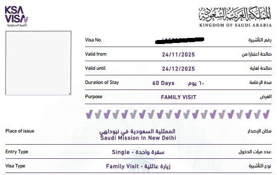 മനാമയിൽ നിന്നും ഡൽഹിയിൽ നിന്നും കഴിഞ്ഞ ദിവസം സ്റ്റാംബ് ചെയ്ത സിംഗിൾ എൻട്രി ഫാമിലി വിസിറ്റ് വിസയിൽ സൗദിയിലെ താമസ കാലാവധി 60 ദിവസമായി ചുരുക്കിയാണു വിസ സ്റ്റാംബ് ചെയ്തിട്ടുള്ളത്.