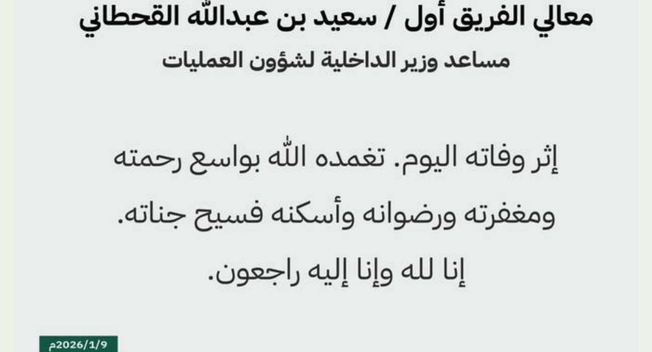 ആഭ്യന്തര മന്ത്രി പ്രിൻസ് അബ്ദുൽ അസീസ് ബിൻ സൗദ് എക്സിലെ ഒരു പോസ്റ്റിൽ അൽ-ഖഹ്താനിക്ക് ആദരാഞ്ജലി അർപ്പിച്ചു.
