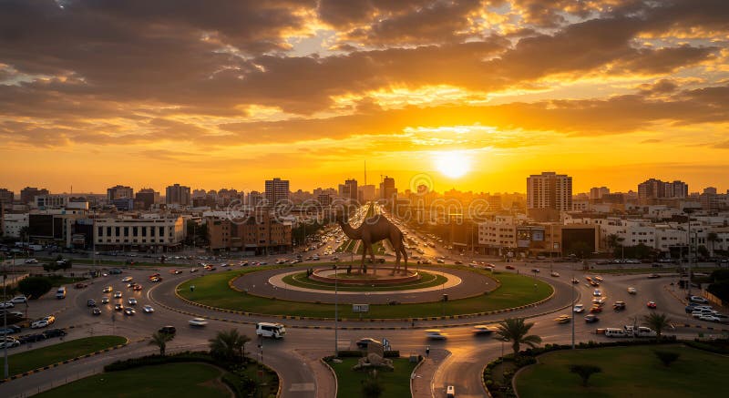 സൗദി കലാകാരനായ റാബി അൽ അഖ്റാസാണ് ക്യാമൽ റൗണ്ട്എബൗട്ട് രൂപകൽപ്പന ചെയ്തത്, അബ്ഹൂറിലെ വടക്കൻ കോർണിഷിലെ റൗണ്ട്എബൗട്ടിന് ചുറ്റും സ്ഥാപിച്ചിരിക്കുന്ന നീളമേറിയ ത്രിമാന ഒട്ടക ശിൽപങ്ങൾ ഇതിൽ ഉൾപ്പെടുത്തിയിട്ടുണ്ട്