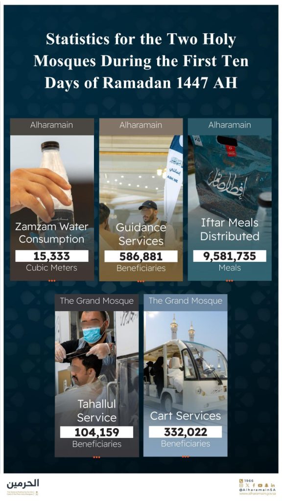 റമദാനിൽ അസാധാരണമായ സേവനങ്ങൾ നൽകുന്നതിനും പ്രവർത്തനക്ഷമത പരമാവധിയാക്കുന്നതിനുമുള്ള സൗദി നേതൃത്വത്തിന്റെ പ്രതിബദ്ധതയാണ് ഈ സംരംഭങ്ങൾ പ്രതിഫലിപ്പിക്കുന്നത്.