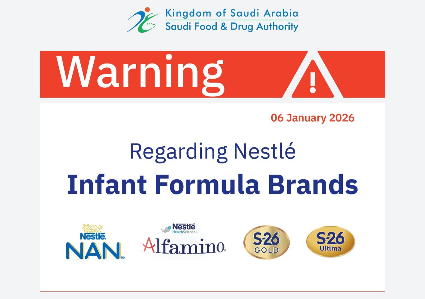 നെസ്‌ലെ ബേബി ഫോർമുലയിൽ നിന്നുള്ള ആരോഗ്യപരമായ അപകടസാധ്യതകളെക്കുറിച്ച് സൗദിയുടെ  മുന്നറിയിപ്പ്!.
